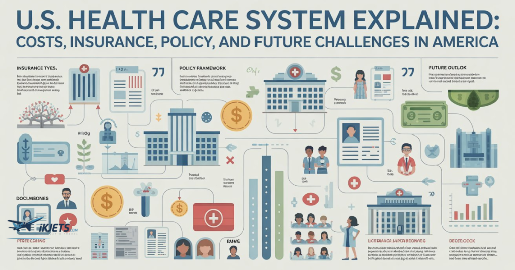 This guide explains the American health care system using simple language, real facts, and practical context. It explores the U.S. medical system structure, policy forces, and everyday realities of health care in America.The article focuses on U.S. health care system costs, insurance access, reforms, and the future. It also examines public programs, private coverage, and how the U.S. hospital and insurance system affects families, workers, and communities across the nation.